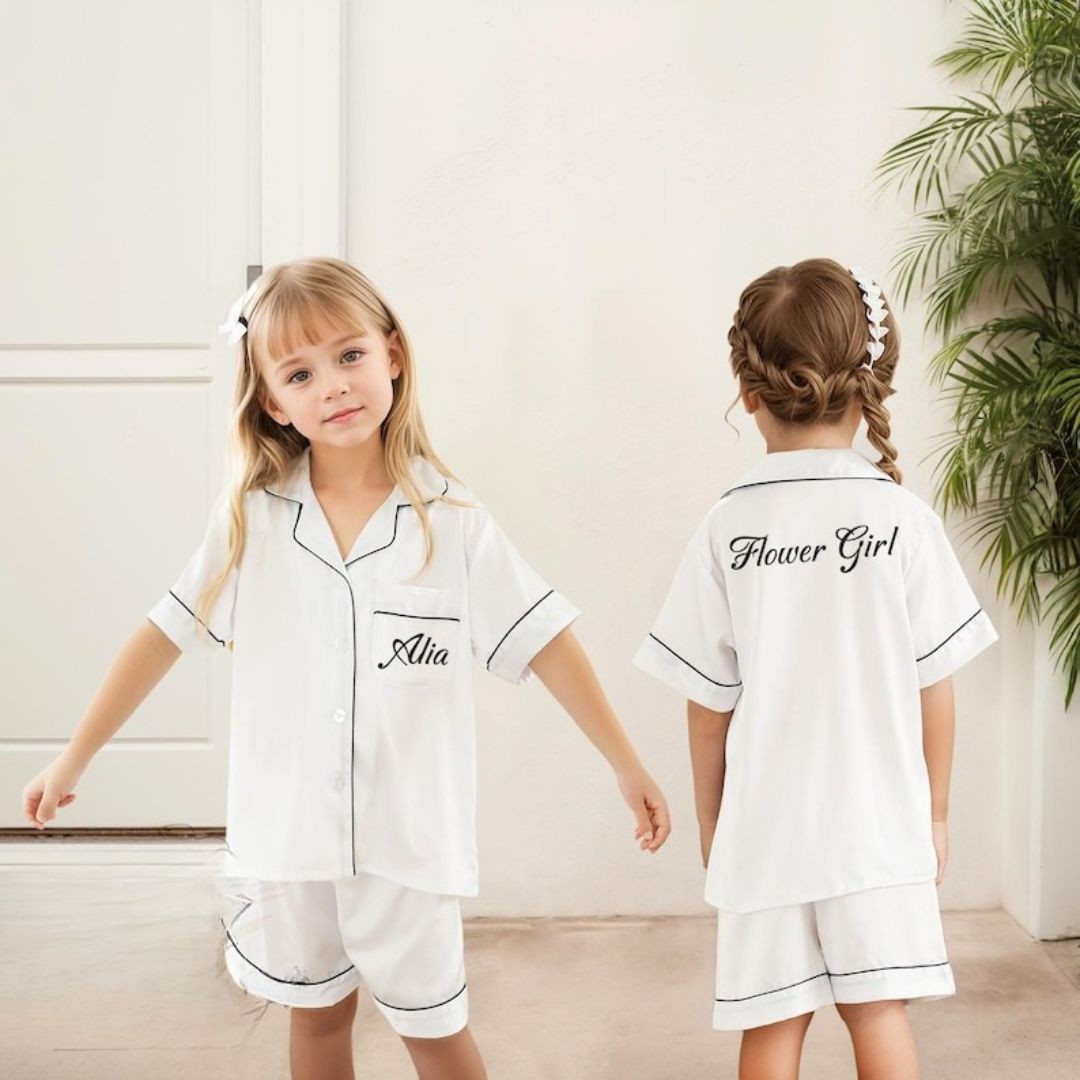 Dieser wunderschön gestaltete Blumenmädchen-Pyjama eignet sich perfekt für besondere Anlässe wie Hochzeiten. Bitte beachten Sie, dass dieser Pyjama nicht als normale Nachtwäsche oder Loungewear geeignet ist. Weitere Informationen finden Sie in Etsys Bestimmungen zu Kinderpyjamas und -kleidung.